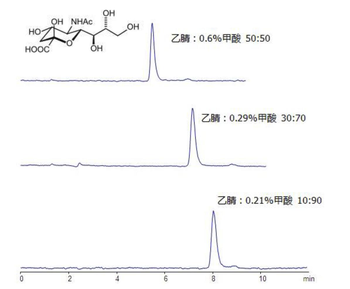 唾液酸是一種含氮氧的一類神經(jīng)氨酸,經(jīng)過糖基衍生化之后,具有很強(qiáng)的極性,在一般反相色譜柱沒法保留,除非加入離子對試劑。