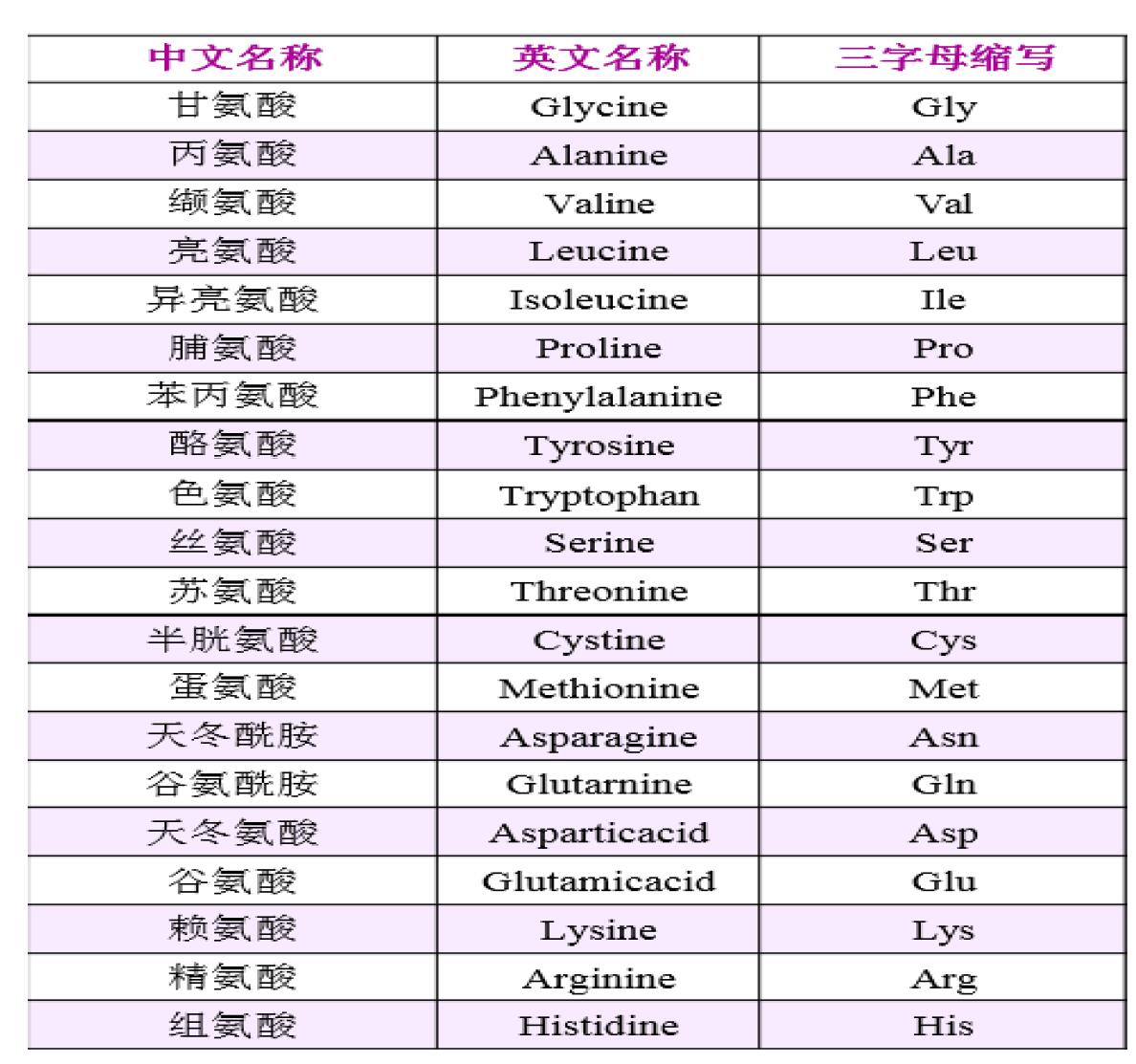 科學(xué)家們已經(jīng)發(fā)現(xiàn)天然的氨基酸有300種,其中基本氨基酸有二十個(gè)品種,比較常見的氨基酸有蘇氨酸、賴氨酸、亮氨酸、纈氨酸、異亮氨酸、色氨酸、蛋氨酸、苯丙氨酸8種氨基酸,人體不能夠自己制造的氨基酸,我們稱為必