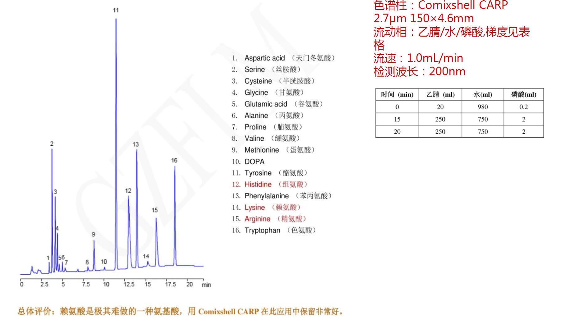 Comixsil CARP智能柱對(duì)16種非衍生氨基酸的分析-UV