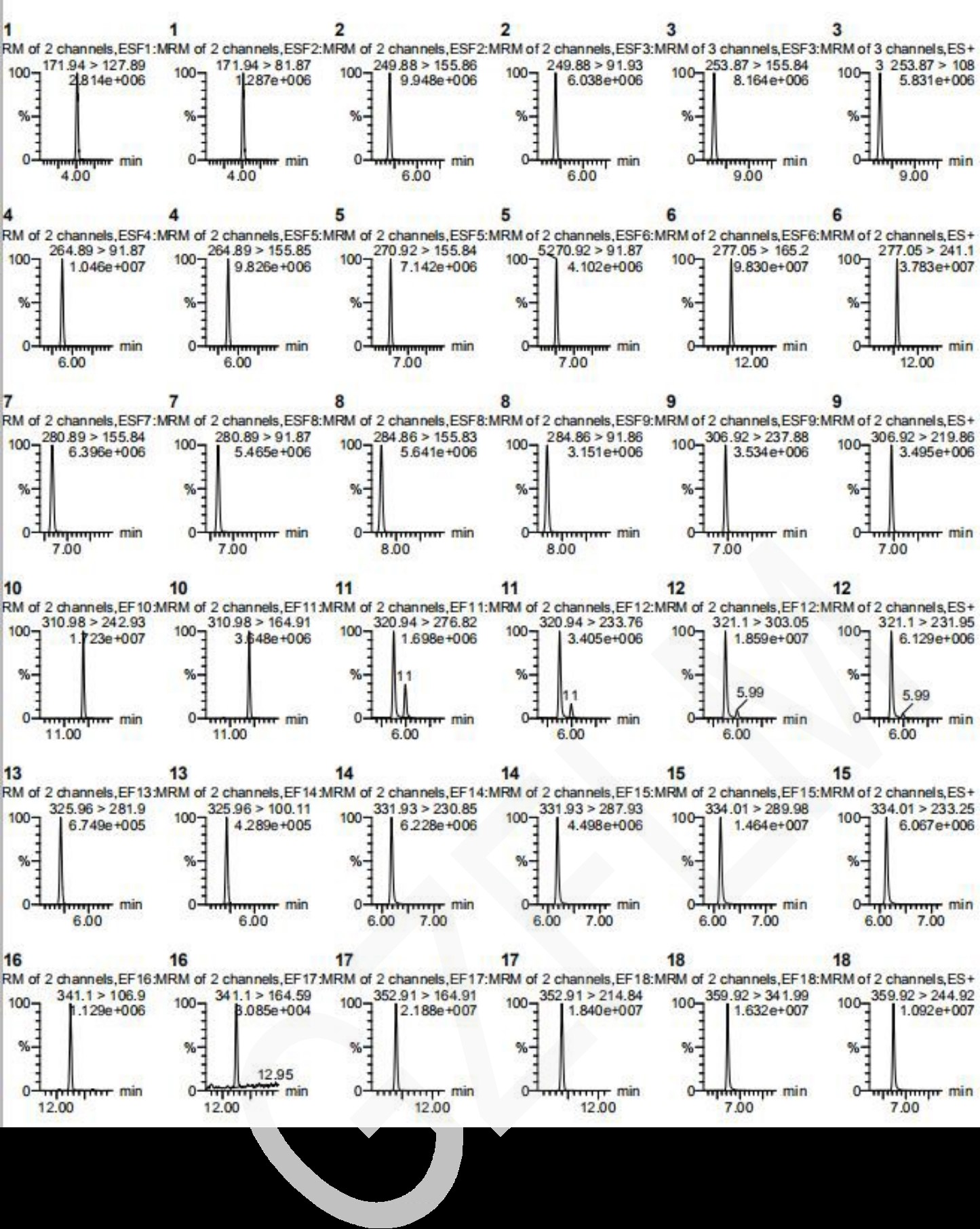客戶評(píng)語:該款色譜柱峰型和分離度優(yōu)秀,可滿足《化妝品安全技術(shù)規(guī)范》2015 年版中對(duì) 36 種抗感染組分檢驗(yàn)方法的實(shí)驗(yàn)要求。