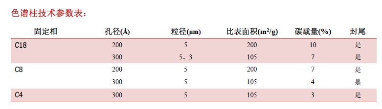 其在純水溶液中不會崩解。提供200 ?和300 ?兩種大孔徑規(guī)格,結(jié)合多種固定相選擇(C18、