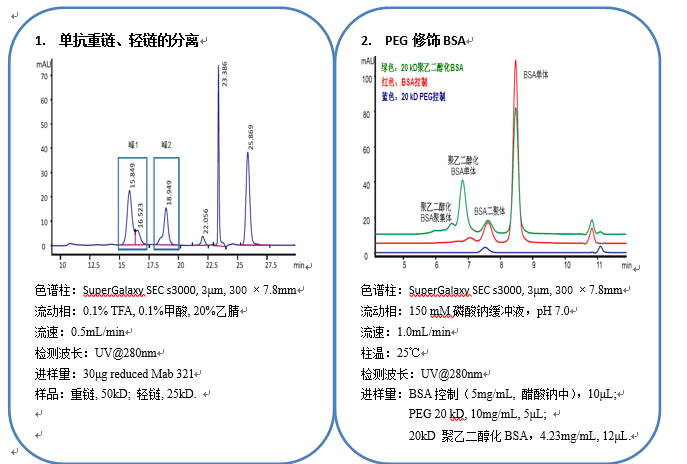 SuperGalaxy系列體積排阻色譜柱采用單分散、球形、表面鍵合了一層納米厚度中性親水薄膜的3μm硅膠作為填料。獨(dú)有的表面鍵合技術(shù)保證了填料表面鍵合的最大化,使其具有極高的化學(xué)穩(wěn)定性和最小的非特異性吸附。