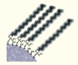 含烴鏈的氯硅烷,如十八烷基氯硅烷,與硅膠(表面有極性硅烷醇基)反應使碳氫化合物附著在硅膠表面(圖9)。